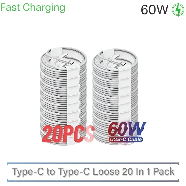 USB-C to USB-C Cable 1M White – Fast Charging & Data Transfer, Loose Packaging Pack of 20