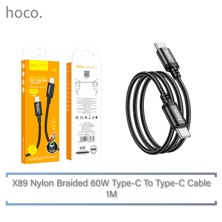 X89 USB-C to USB-C Nylon Braided Cable 1m – 60W Fast Charging, Durable Design, Black – HOCO