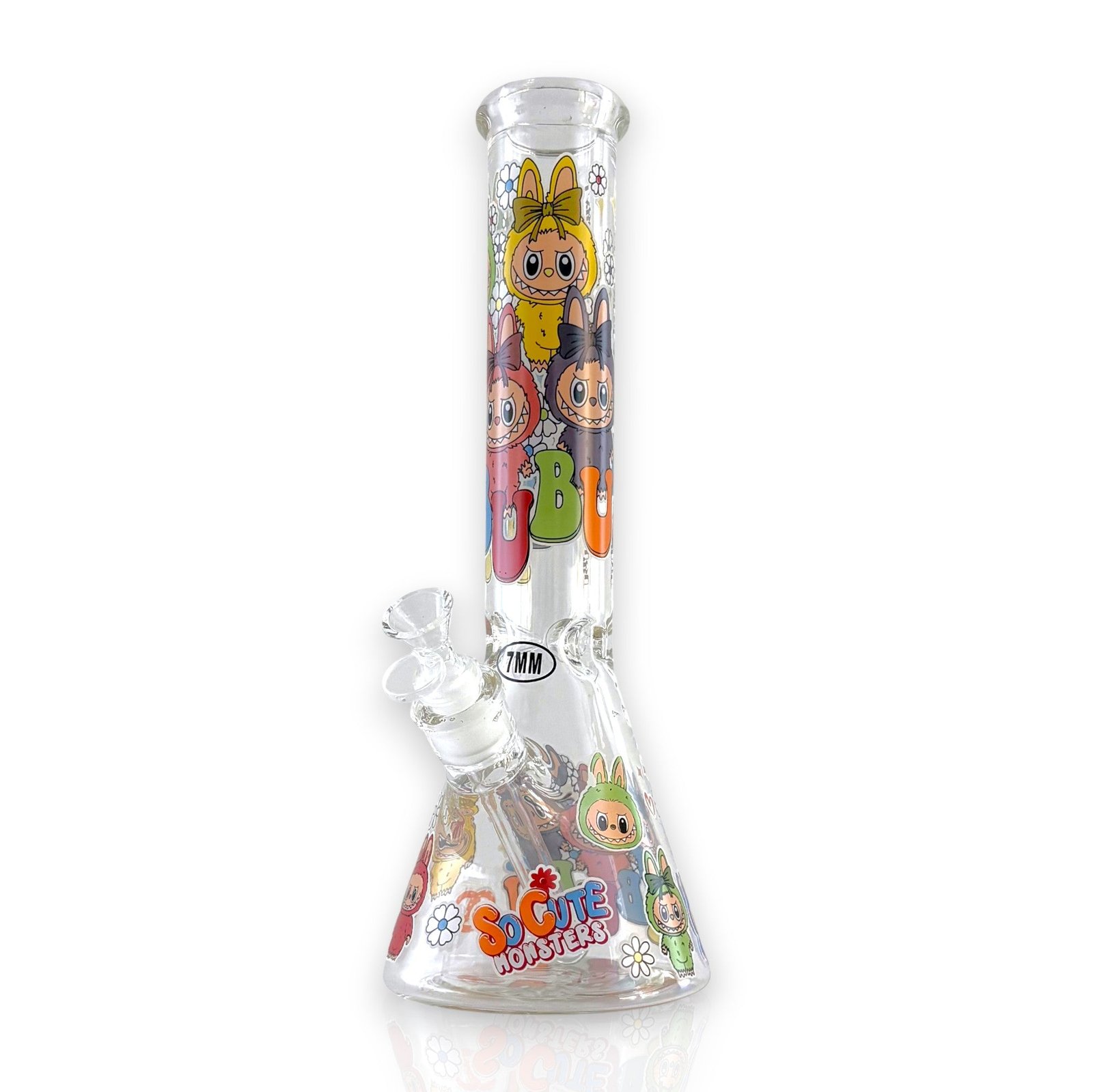 Add personality, color, and premium durability to your collection with these adorable 14-inch “So Cute Monsters” Beaker Water Pipes. Built from heavy-duty 7mm borosilicate glass, each piece delivers exceptional sturdiness and a smooth, reliable smoking experience. The 50mm diameter neck provides a comfortable pull, while the wide beaker base ensures stability during every session.