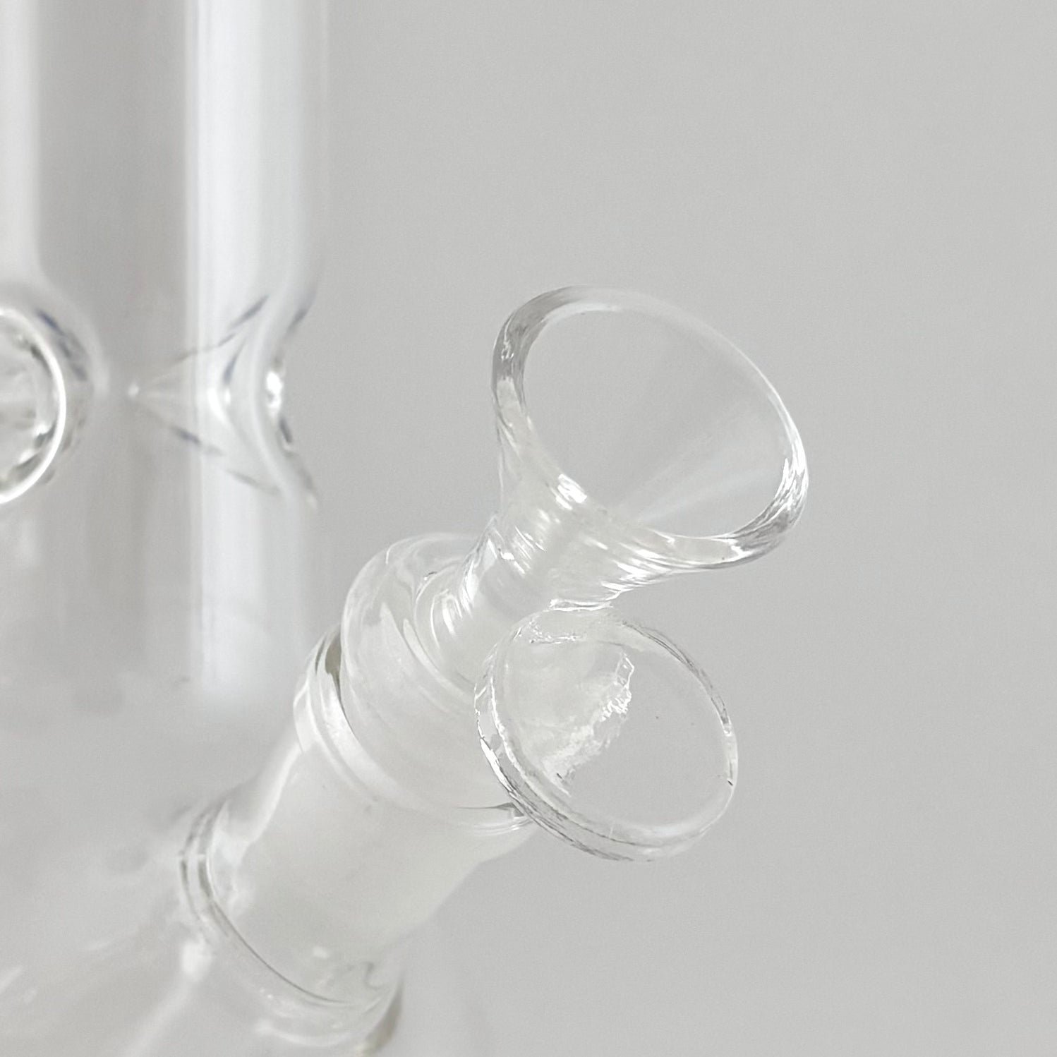 The beaker base design provides excellent stability and increased water capacity for cooler, cleaner hits. Each bong includes a 5″ removable downstem diffuser to enhance filtration and a 14mm clear glass handle bowl piece for easy handling and loading.