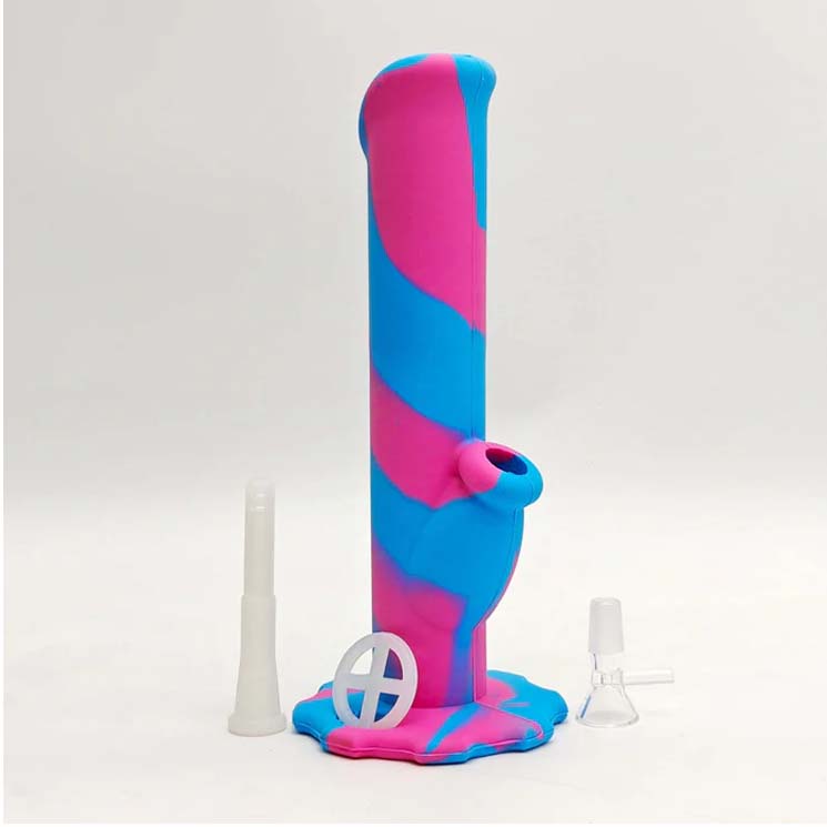 10 in. Height Made from food grade silicone Unbreakable 4 " silicone downstem for 14 mm male bowl Thick bowl for 14 mm female joint Assorted colors & Designs Lighter...