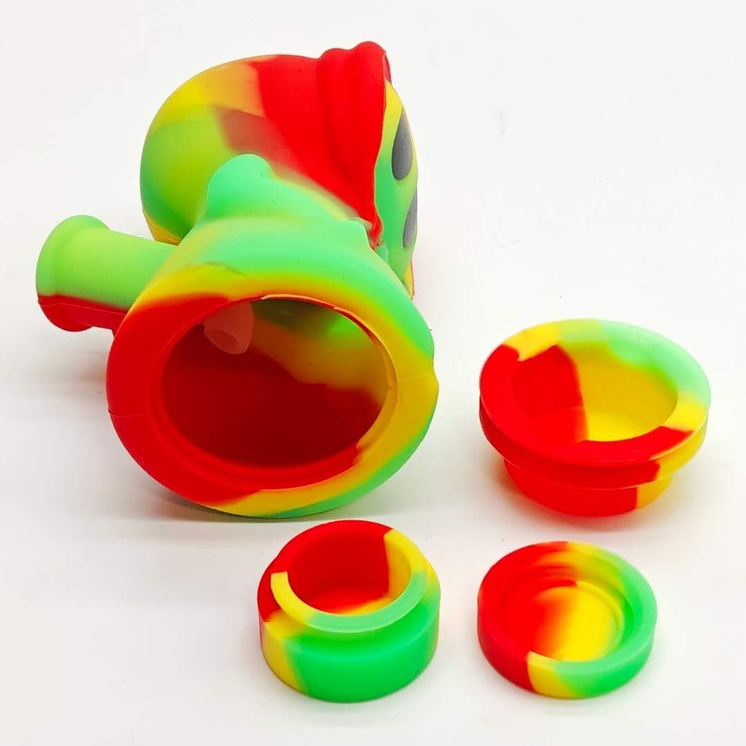 Made from food grade silicone Height : 6" Unbreakable Thick bowl for 14 mm female joint Detachable Including scoop tool, glass bowl and silicone container Assorted color